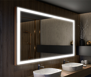 An illuminated LED mirror with a decor can emit light falling on the wall behind it or on the person standing in front of the mirror. In both cases, you choose the light power and intensity. Warm lighting promotes relaxation in the bathroom, cold lighting will stimulate you to action.